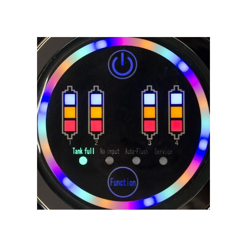 Sistema de Control Automático. El depurador de agua Nertus dispone de un sistema que controla todo el proceso de producción de agua, así como detenerse automáticamente cuando no hay entrada de agua o el tanque está lleno. Puede mostrar el tiempo restante de vida de los filtros, y recordar que han llegado al final de su vida útil. Puede mostrar también las señales de tanque lleno, falta de agua, limpieza de membrana automático.